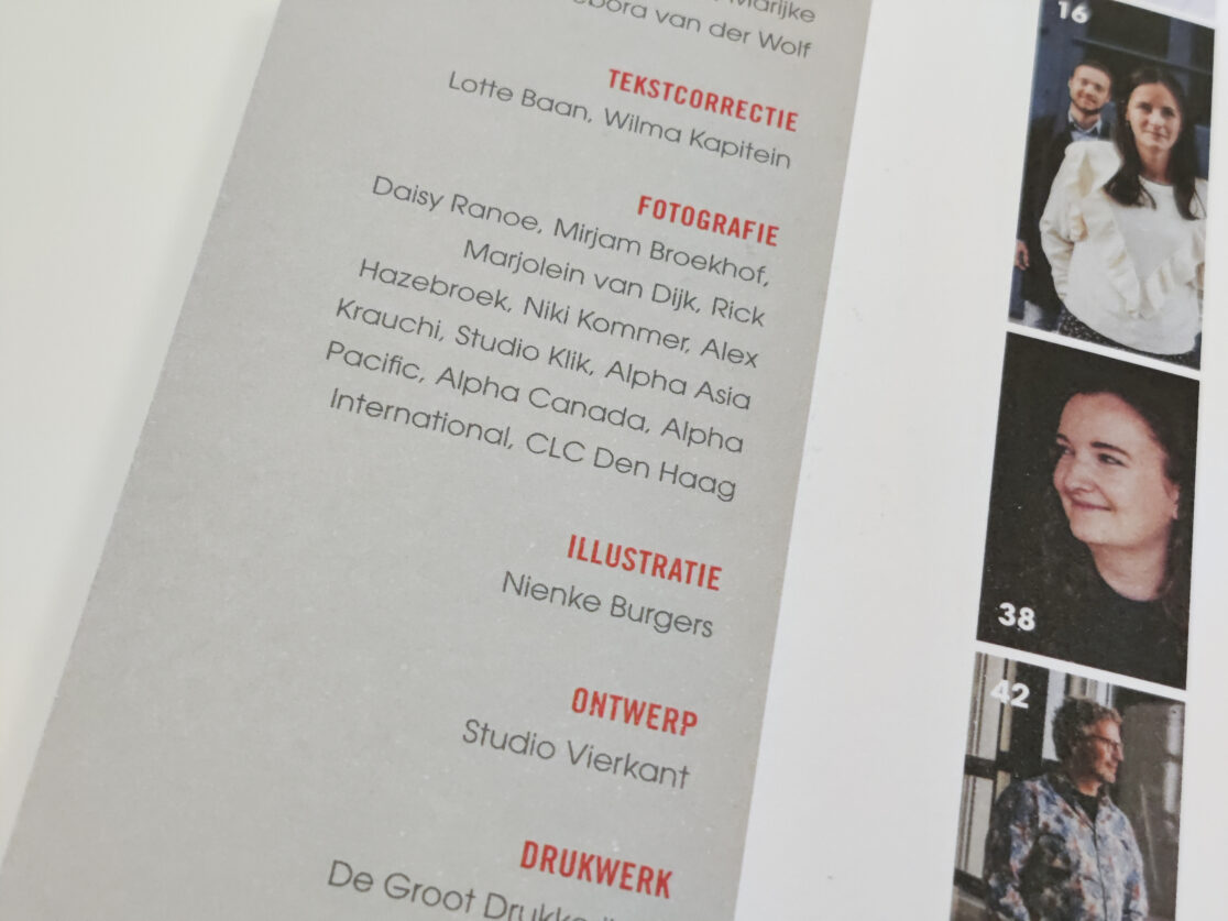Alpha Nederland vroeg mij of ik een nieuw design voor het Alpha-magazine 2021 wilde ontwerpen. En of ik genoeg tijd heb, want het werd een jubileumeditie. We zochten naar een sterke basis waardoor een goede balans tussen tekst en beeld ontstond. Maar ook met de typografie, vormgeving en volgorde van pagina’s werd geëxperimenteerd tot het klopte. Alles passend bij de identiteit van Alpha. Iedere pagina is anders, maar het is wel een totaalbeeld als je er doorheen bladert. Alle verhalen en foto’s kwamen samen en in december kwam hij vers van de pers! Dankzij alle talenten die hieraan hebben meegewerkt is het supermooi geworden!  In 2023 werd ik opnieuw gevraagd om het magazine vorm te geven. Dit keer had het magazine het thema ‘groei’. Door middel van nieuwe grafische elementen, passend bij het thema, werd het een blad met dezelfde uitstraling, maar nieuwe elementen, passend bij het thema. Je bekijkt hem hieronder.