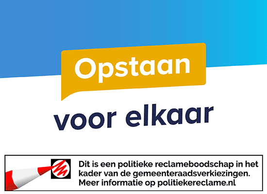 Voor de verkiezingscampagne van de Gemeenteraadsverkiezingen 2026 heeft Studio Vierkant verschillende grafisch uitingen vormgegeven. Bekijk ook het verkiezingsprogramma van 2025.