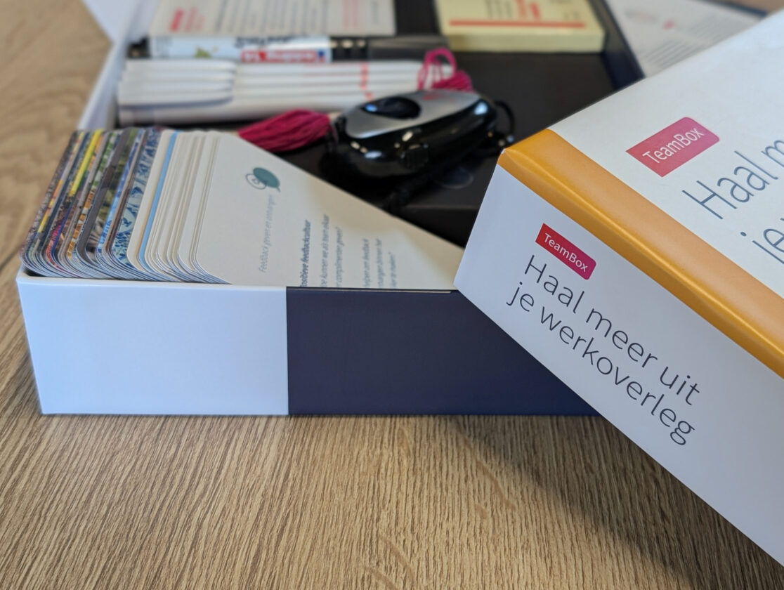 De TeamBox is speciaal ontworpen om zorgteams te ondersteunen bij het blijvend toepassen van nieuwe inzichten en werkwijzen. Praktisch, duurzaam en zonder extra druk op de leidinggevende. Deze box is gevuld met concrete tips, inspirerende werkvormen en online tools, zodat zorgteams kunnen blijven communiceren, samenwerken en groeien.