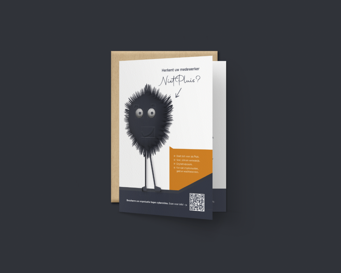Cybercrime kan iedereen overkomen. Pluis het daarom eerst uit voordat je over gaat op actie. Voor de klanten van Hupra ICT hebben we een campagne opgezet voor een betere cybercrime bewustwording met de focus op veilig werken. Het welbekende niet-pluis-gevoel kwam tijdens de brainstorm naar voren en al snel werd duidelijk dat dit de kapstok werd voor deze Security Campagne. Niet Pluis is visueel geworden. Een vriendelijk en betrouwbaar ogende illustratie in de vorm van een schild, maar ondertussen…Deze campagne is puur bedoelt als bewustwordingscampagne vanuit Hupra ICT. Iedere klant krijgt een kistje 🔑 met daarin onder andere een poster met tips, dilemmakaartjes, een webcamschuifje en een begeleidend kaartje met een verwijzing naar de training ‘Veilig Werken’.